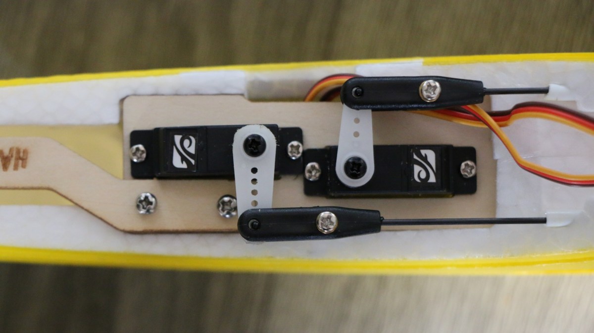 Ahi-FM-19 Publié 29 janvier 2018 à 1924 × 1080 Les servos, le palonnier profondeur est légèrement plus grand, plaquer le servo de profondeur à fond à droite pour laisser la place au palonnier de débattre.
