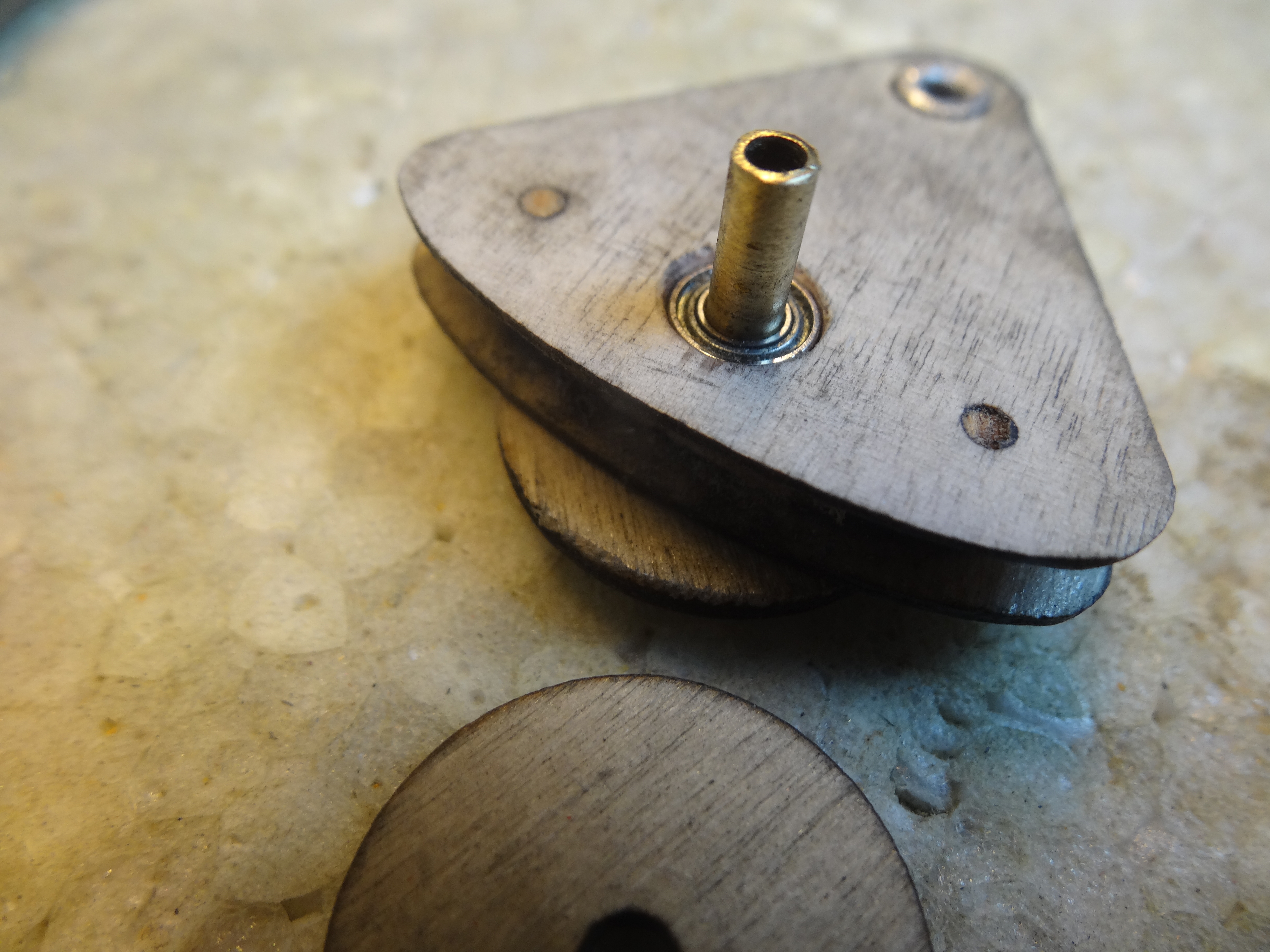 La platine servo est montée à partir de pièces de c.t.p. découpées par laser.