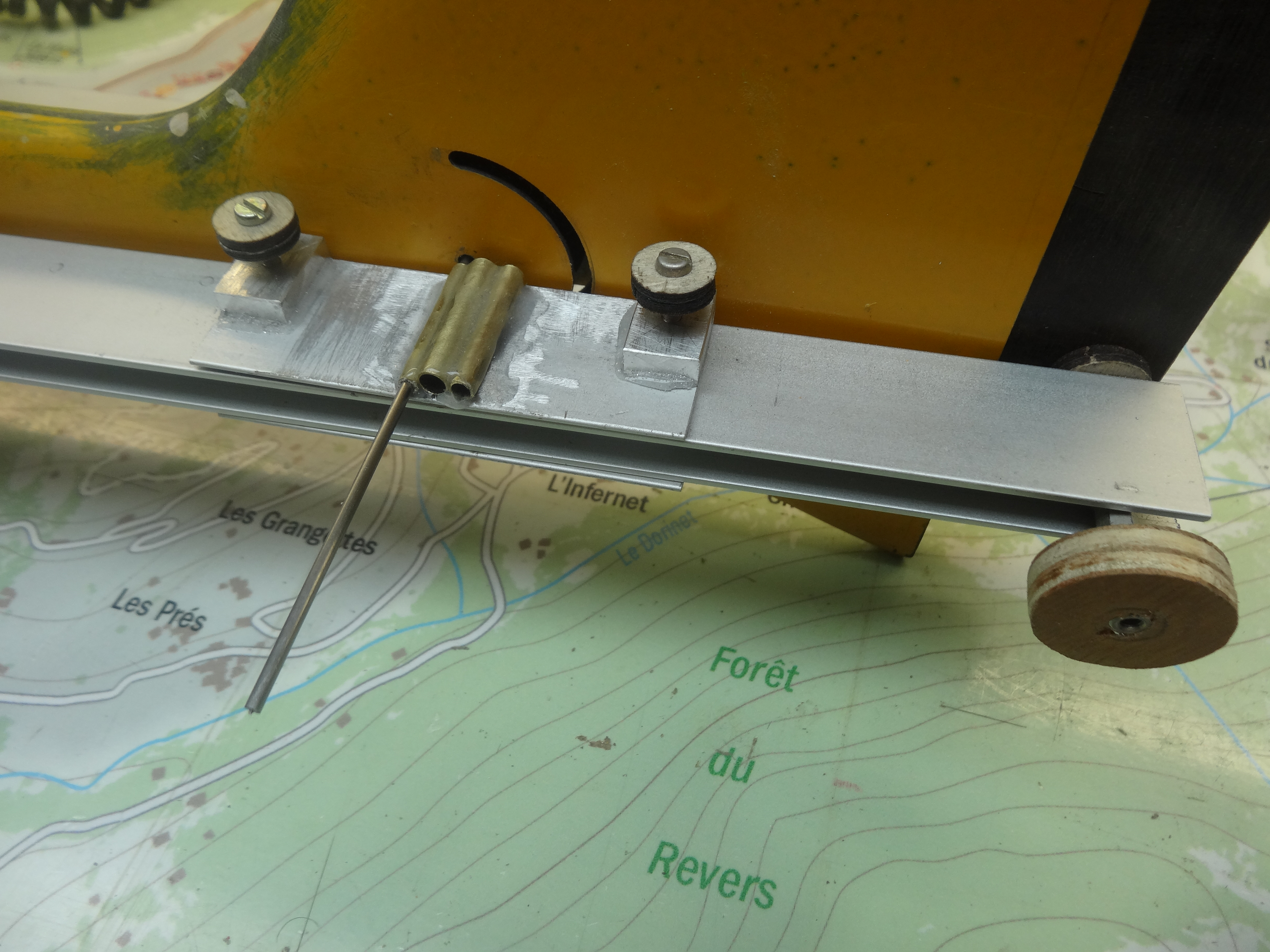Cette platine doit être entièrement montée à l’extérieur du fuselage. Puis quand tout est bien d’équerre, collé à l’époxy dans le fuselage.