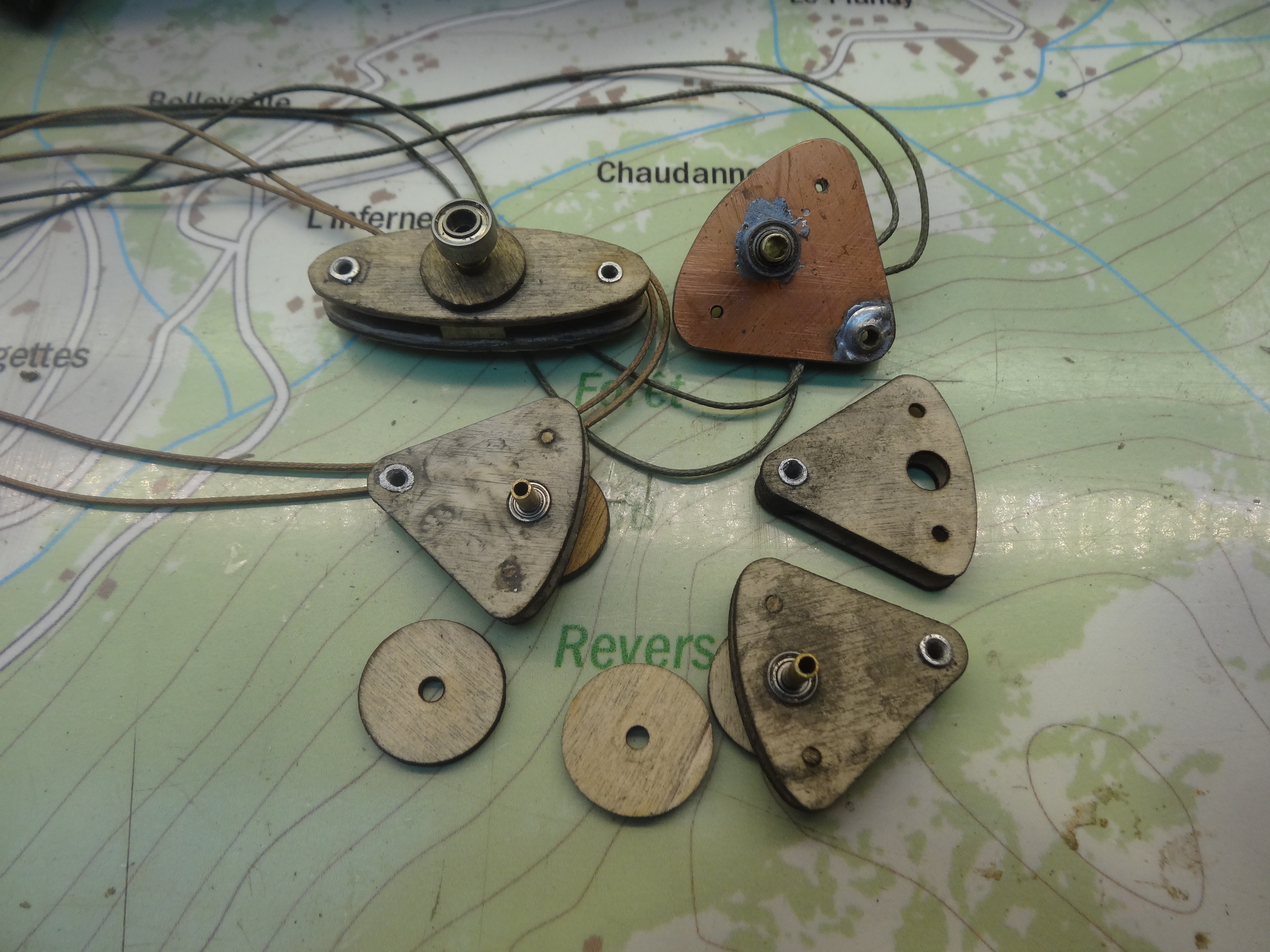Ci dessous, la platine servo montée à partir des pièces en c.t.p. découpé laser. Cette version n’est pas la version définitive, mais donne une idée du dispositif.
