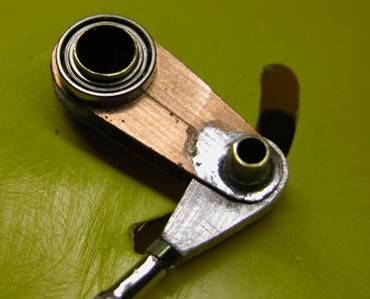 Il faut absolument éviter la rupture par fatigue excessive des fibres. Donc pas de nœud ni de frottement, ni d’angle vif. Les fibres d’aramide sont très solides mais je ne veux pas courir de risque sur des modèles très fortement sollicités. Il y a d’autres moyens plus originaux pour démolir le matériel. Le guignol de stabilo sera obligatoirement monté sur un roulement à billes. Ce roulement permet de supprimer le jeu et de tendre vraiment le câble AR. Le roulement doit être convenablement dimensionné pour recevoir le tube de clef de rotation du stabilo.
