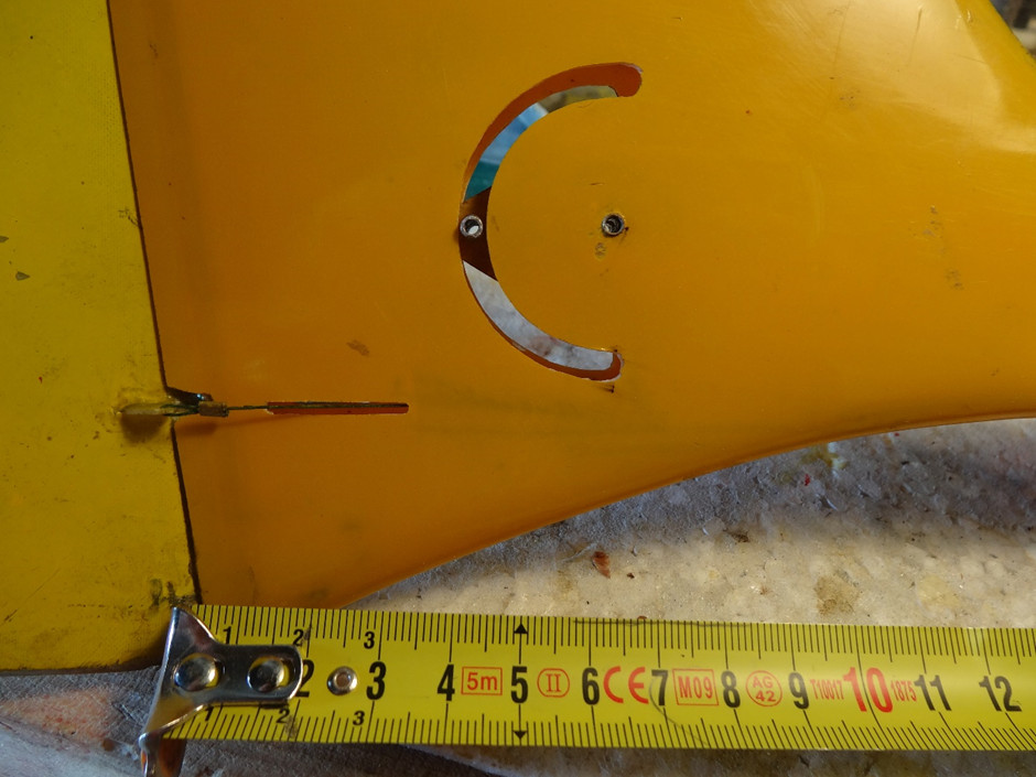 La commande de ce volet de dérive est aussi en câbles aller-retour. Ces câbles sont en acier gainé nylon et passent sous le guignol de stabilisateur. Noter la découpe circulaire de clef d’incidence.